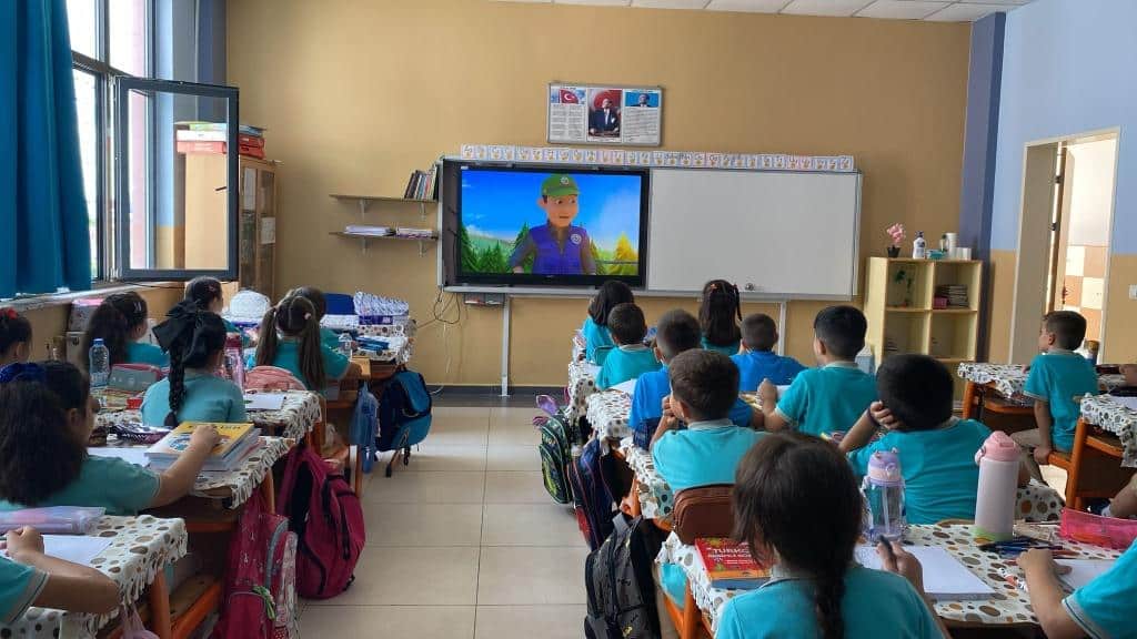 Türkiye Yüzyılı Maarif Modeli Erdem-Değer-Eylem Çerçevesinde ifade edilen "duyarlılık" değeri kapsamında "çevreye ve canlılara değer vermek" eyleminin yansıması olarak 2025-2026 eğitim ve öğretim yılının ilk dersinde tüm sınıflarımızda Orman Yangınlarına Karşı Yeşil Vatanı Korumak teması işlenmiştir.